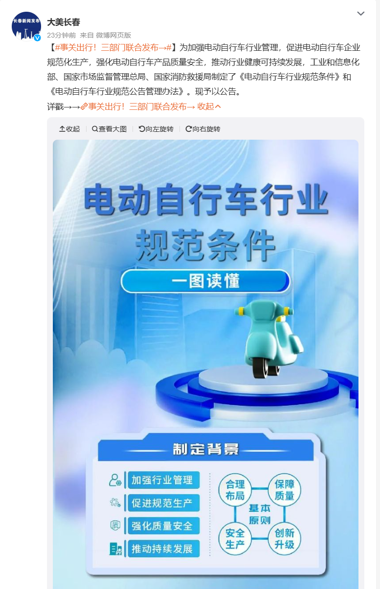 一方、バッテリーが発火原因となる火災事故も目立っている。大量の有毒ガスを発生し、健康被害はもとより、人命への影響も取り沙汰されることがある。そのため、工業および情報化部は市場監督総局、国家消防救援局と共に「電動自転車業界規範条件」および「電動自転車業界規範公告管理方法」を編纂し、4月30日に正式に発行した。