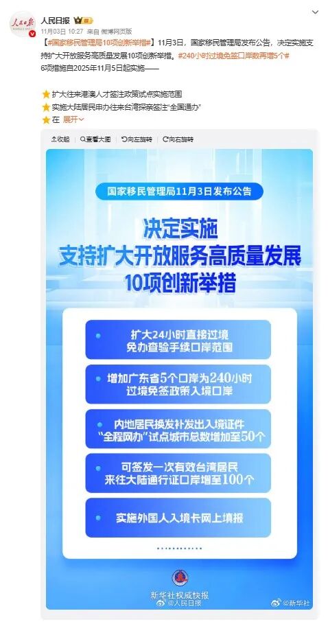 | [1] 国家移民管理局(中文) | 国家移民管理局推出支持扩大开放服务高质量发展10项创新举措 | https://www.nia.gov.cn/n897453/c1751138/content.html |