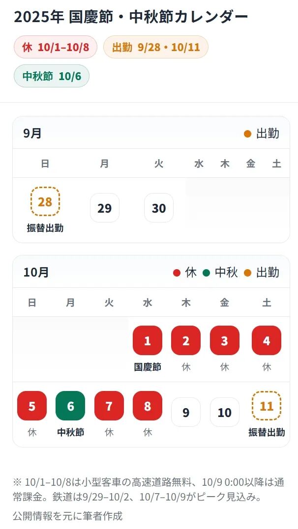 2025年の国慶節と中秋節は重なり、10月1日から8日まで8連休となる。国内鉄道利用は過去最大規模の2億1900万人に達する見込みであり、同時に海外旅行需要も急増している。今秋の大型連休は、中国消費者の行動変化を示す重要な指標となる。【音声付】秋の黄金週『国慶・中秋8連休』が目前、出勤日に注意!"ニッチ覚醒"で今後の消費トレンドは?