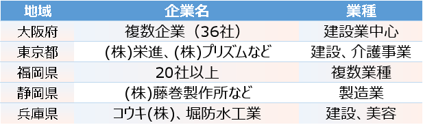 「協力雇用主制度」や「職親プロジェクト」に登録・参加している企業の一部