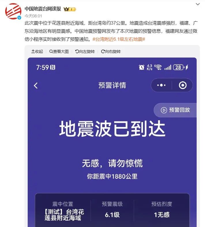 一方、中国在住の日本人にとっては「Weixin(微信、WeChat)」の「国家地震台網」が提供する「地震警戒情報」ミニプログラムの活用も有効だ。このプログラムは、地震発生の数十秒前に震源地や推定震度を知らせるもので、日常的な防災にも役立つ。今朝(16日)は福建、広東沿海域で地震の揺れが感じられたことをいち早く伝えていた。(編集:耕雲)
