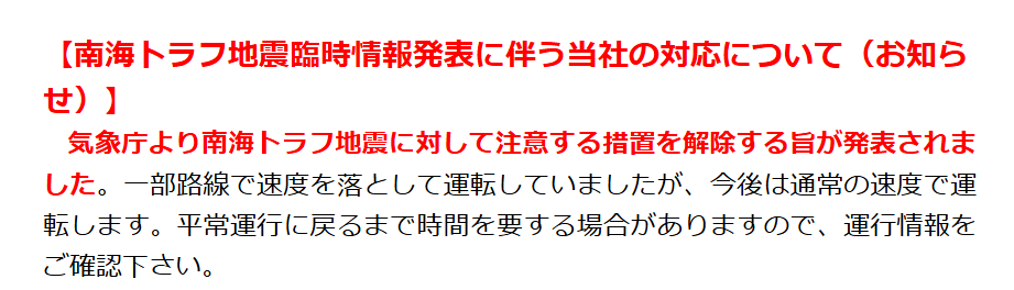 中国の地震警報サービスが進化、Weixinのミニプログラムでアラート即時通知 (qq.com) 気象庁|南海トラフ地震 (jma.go.jp) 特大地震可能!去日本机票退改签免费吗?多家航司回应→ (qq.com) 松山 道後温泉 キャンセル数千人の見込み 南海トラフ情報受け | NHK | 愛媛県