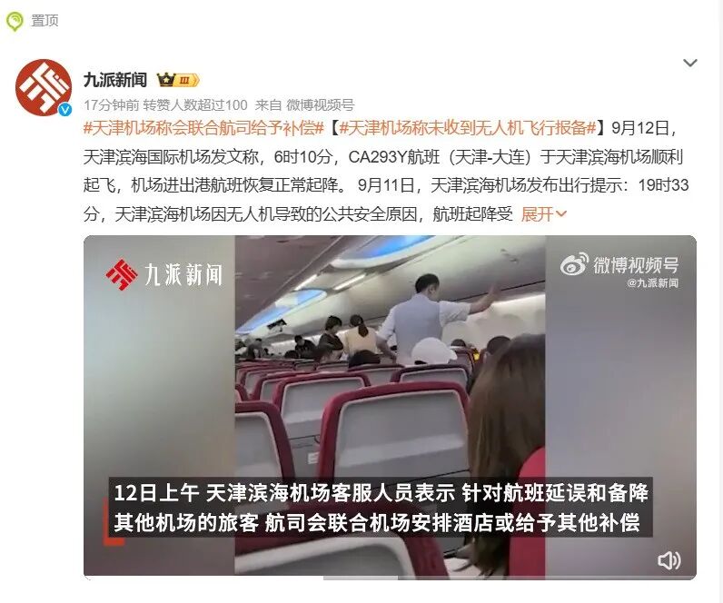 9月11日夜、天津濱海空港で全便の離着陸を停止する措置がとられたことで、約3,000人の乗客に影響が及んだ。同空港はドローンを原因とする安全上の理由のためと説明、中国の「低空経済」において重要な役割を果たすドローンが、空港の航空安全を脅かすリスクと表裏一体にあることを再認識させることになった。