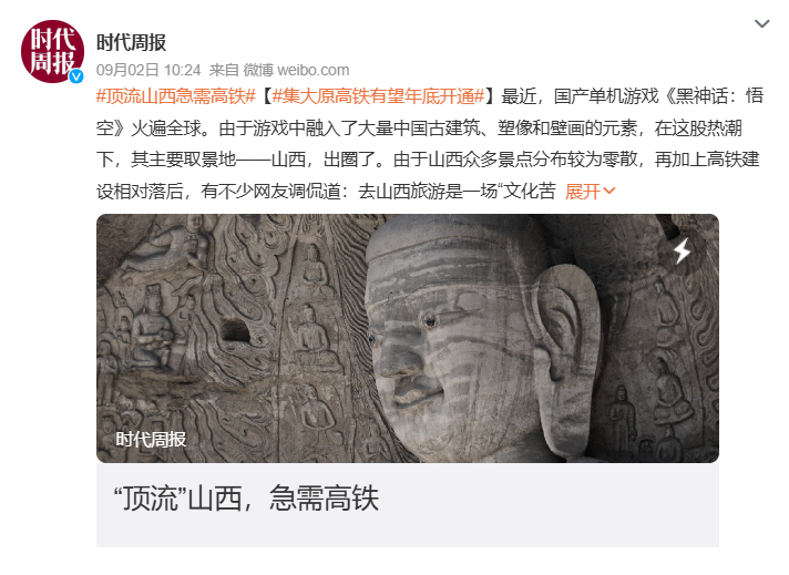 中国古典小説の「四大奇書」の一つ『西遊記』を題材としたアクションRPG『黒神話:悟空』の大ブレークを受けて、山西省の観光市場が活況を呈している。ただ、同省の観光資源は広く全域に分散しており、高速鉄道網が不十分なことが観光誘致のうえでハードルになっているという。