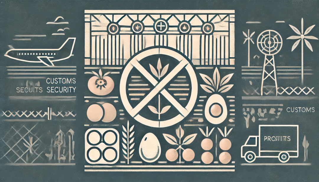 たとえば、日本では動物疾病の拡散を防ぐため、鶏、アヒル、豚、牛、羊などの肉類や肉製品(ホットドッグ、ハム、ベーコン等)、加熱されていない卵類等の国内への持ち込みは厳しく禁止されている。真空包装であっても、検査証明書のない場合は持ち込み不可だ。