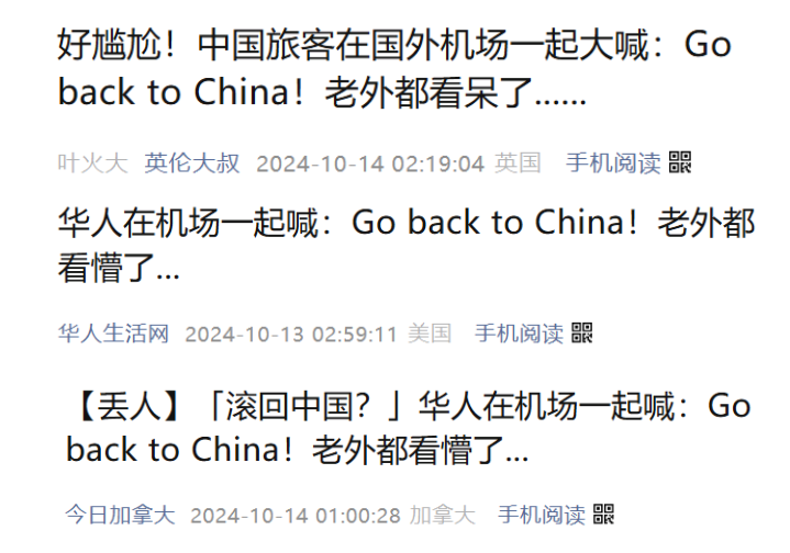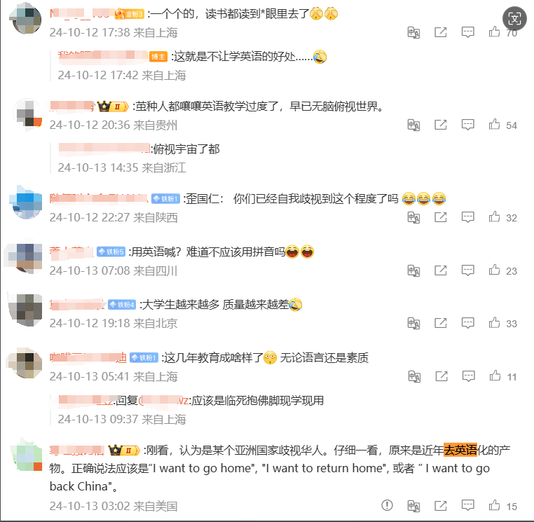 この出来事は瞬く間にソーシャルメディアで注目されることになり、多くの議論を呼んだ。正しい英語表現であれば「I want to go home」「I want to return home」となるところだが、なぜか中国人自身が「中国へ帰れ!」と叫ぶ顛末となったことにネットは騒然となった。