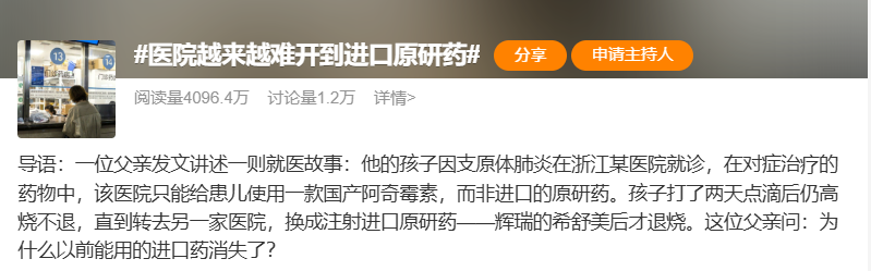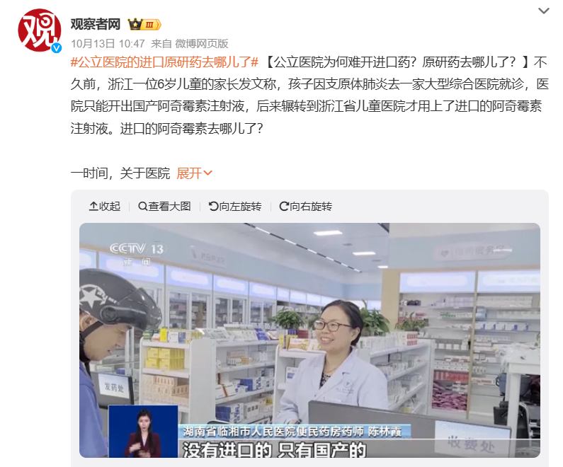 CCTV等の報道によると、中国で輸入薬が処方されにくくなった背景には、2018年以降、集中調達政策が浸透してきたことがある。以来、各公立病院では割高な輸入薬が集中調達薬品リストから外された。調達薬品全体の30%の上限以内なら「リスト外」の薬品を購入できる余地もあるが、「リスト内」の薬品のみを購入する方針を取る病院も少なくないという。消費者の側では薬局やオンラインチャネルで輸入薬を求める傾向が強まっているとされる。(編集:耕雲)