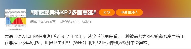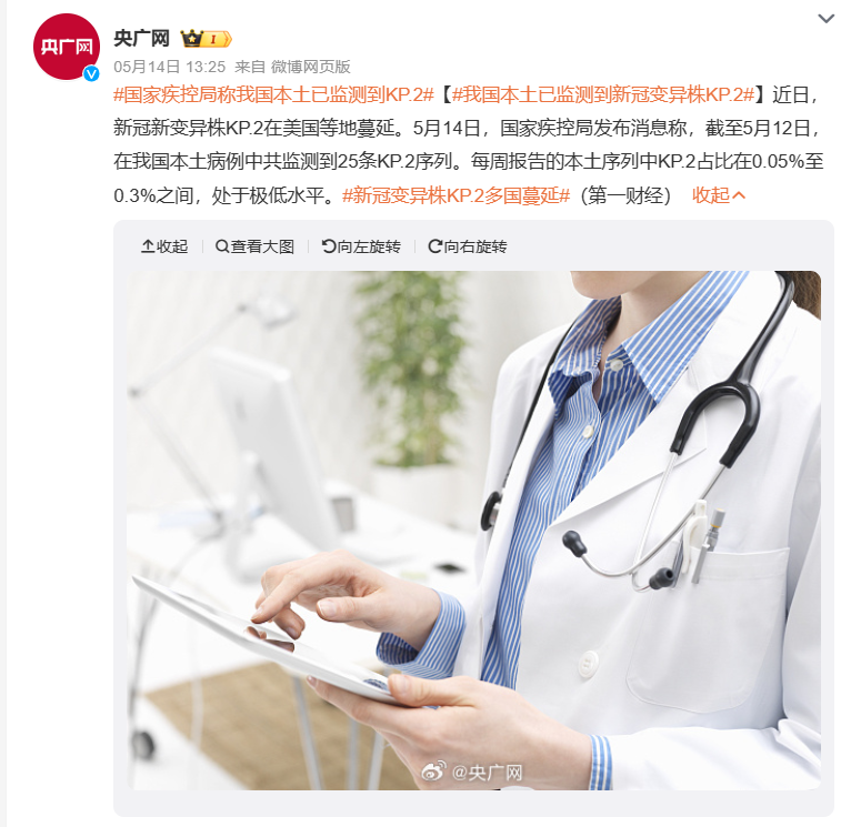 中国本土ではJN.1、JN.1.16、JN.1.4が主流の流行株となっており、広東省で初めてKP.2が検出されたのは3月11日のことだ。その後、5月12日までに合計25件のKP.2系列が検出されている。毎週報告される国内の固有の配列に占めるKP.2の割合は0.05%から0.3%の間であり、非常に低い水準にとどまる。そのため、中国疾病予防管理局(国家疾控局)はKP.2が中国で短期間のうちに主要流行株となって新たな感染ピークを引き起こす可能性は低いとした見解を示している。