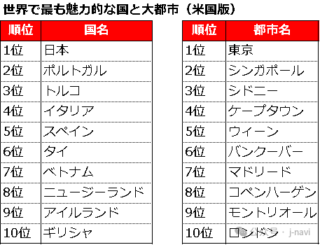 円安に揺れる為替レートを背景にしている向きもあるが、旅行をテーマとした話題では日本の存在感が一段と高くなる。米国の著名な旅行雑誌『コンデナスト・トラベラー(Condé Nast Traveler)』が発表した最新の「リーダーズ・チョイス・アワード」(米国版、英国版)では、日本が2年連続で「世界で最も魅力的な国」の第1位に選ばれている。