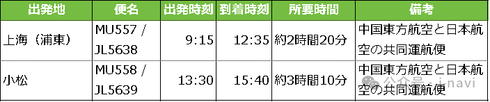 11月現在は週2便(木・日)で運航。 参考:小松空港ホームページ