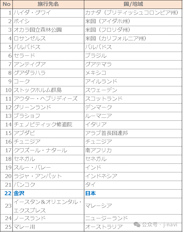 Best Countries in the World | U.S. News 2024 年世界最佳国家排名,日本竟超越美国位居第二! “全球最具魅力的国家”排名,日本再次蝉联第1名 Best Destinations to Travel in 2025 - Lonely Planet 金沢が米有力旅行メディアで「2025年に行くべき世界の旅行先25選」に選出!|日本政府観光局プレスリリース_20241030 小松至上海定期航班将增至每周四次 | NHK WORLD-JAPAN News 小松空港から金沢駅までのアクセスは?バス・電車・タクシーの料金・時間を比較!