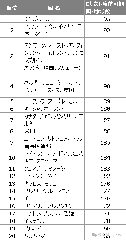パスポート力で日本は2位