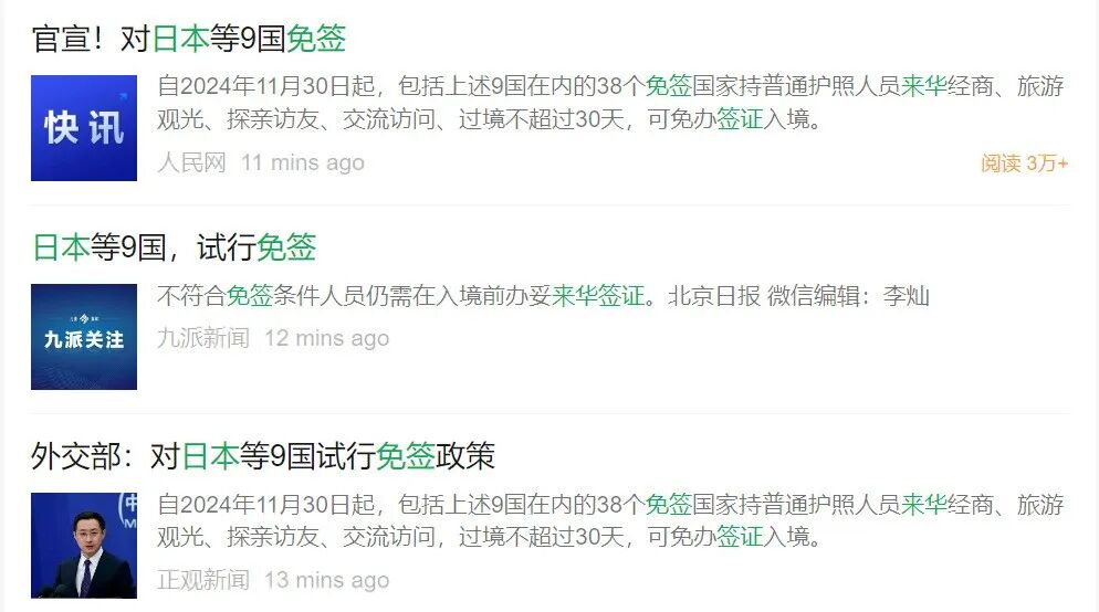 官宣!对日本等9国免签|人民网
