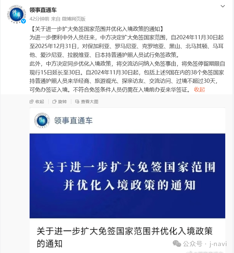 关于进一步扩大免签国家范围并优化入境政策的通知|领事直通车