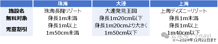 中国国内のテーマパークでは、子ども向け割引料金(および免除)の適用基準に「身長」が採用されるケースが多い。迅速な判別が可能になる利点がある一方、個人差が大きい身長を基準にするのは不公平だとする指摘もある。
