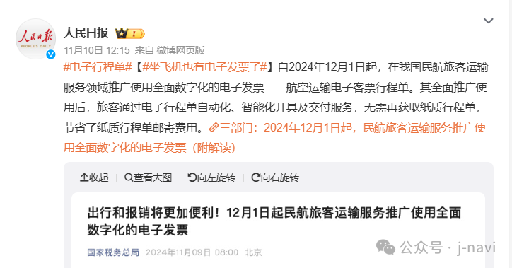 中国の国内航空券領収書、12月からデジタルシフト!紙版は2025年9月末まで有効