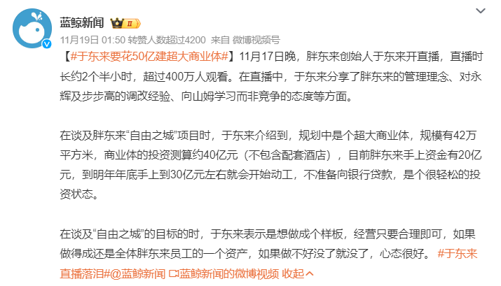 于氏は11月17日にライブ配信を通じて、その計画の青写真を明らかにしている。現在手元資金は20億元といわれるものの、銀行貸付に頼らずない資金調達する計画だという。着工時期は2025年中を見込んでおり、地域社会への貢献を視野に入れた新たなプロジェクトとして脚光が集まる。大まかな着工時期のアナウンスはまだないが、プロジェクトの進展に大きな期待が寄せられている。(編集:耕雲)