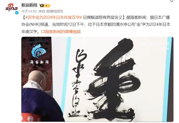 今年で30周年を迎えた「今年の漢字」が12月12日に発表された。2024年の世相を代表する漢字に選ばれたのは「金」で、清水寺(京都市東山区)の森清範(もりせいはん)貫主(かんす)が特大の和紙に勢いよく書き上げる映像が中国のSNSでもすぐさま拡散された。22万1971通の応募の中で最多の1万2148票(5.47%)を集めた「金」は、2000年、2012年、2016年、2021年と過去4回「今年の漢字」に選出されており、五輪開催年の常連漢字ともなっている。