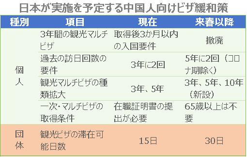 中国人観光客の訪日ビザが来春から段階的に緩和される。滞在期間の延長や手続きの簡素化に加え、富裕層向けには観光数次ビザの有効期間が10年タイプのものが登場する予定だ。2025年大阪・関西万博への集客強化を含め、観光需要の拡大に期待がかかる。
