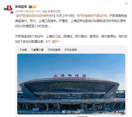 上海で新たに登場した交通ハブは、長江デルタの広域連携における結節点となっている。上海松江駅は上海虹橋と湖州(浙江省)を結ぶ「滬蘇湖高速鉄道」の経由駅としてだけでなく、総合交通ターミナルとしての役割を担う。また、"スーパー環状高速鉄道"の新路線が運行を開始しており、リニューアルされた上海南駅がその発着駅となっている。