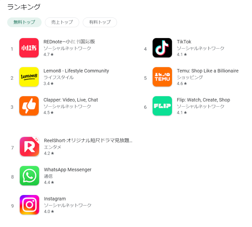 こうして見ると、TikTok難民が選ぶ避難先候補がいずれも中国製アプリであるという現状が浮き彫りになる。規制とニーズの狭間で揺れる市場の行方は依然として予断を許さない。“難民”たちの“居場所”探しは、19日に新たな局面を迎えることになる。(編集:耕雲)