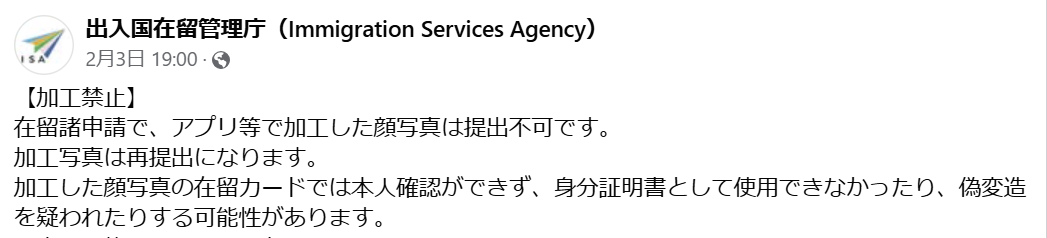 提出写真の規格 | 出入国在留管理庁 【加工禁止】... - 出入国在留管理庁(Immigration Services Agency) | Facebook 2025 日本签证大变!过度美颜照片被禁,速看新规避坑