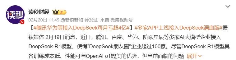 「どこでもDeepSeek」急拡大、各産業を席巻、WeChat運営もAIに任せる時代に?