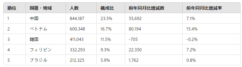 令和6年6月末現在における在留外国人数について | 出入国在留管理庁