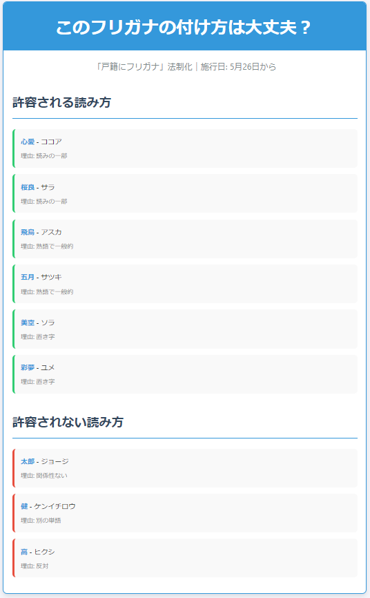 フリガナの基準は、社会通念上の常識を踏まえたものとなっており、あまりに突飛なものは容認されないと理解したほうがよさそうだ。