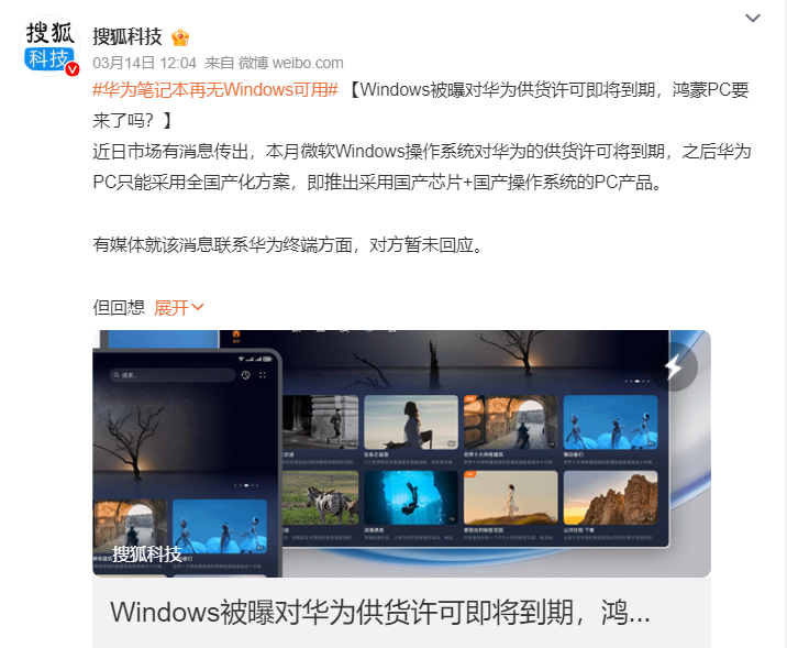 界面新聞などの報道によると、ファーウェイは今後、HarmonyOSを搭載したパソコンのラインナップを展開していく予定だ。その背景には、マイクロソフトがファーウェイ製PC向けに提供してきたWindows OSのライセンスが3月末で期限切れになることがある。ライセンスの延長は行われず、今後はWindowsの代わりに「HarmonyOS NEXT」が使用されていく見通しだ。