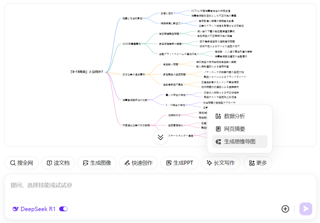 DeepSeek R1を統合したWPS。データ分析やマインドマップ作成機能も