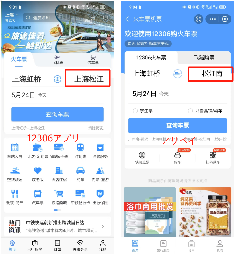 12306アプリとは異なり、アリペイでは旧名表示となっている(5月24日現在)
