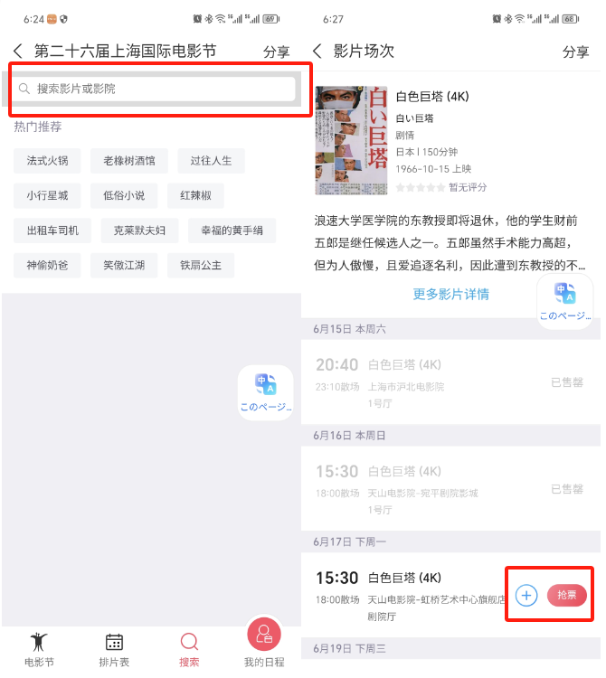同プラットフォームのトップページに上海国際映画祭のバナーがあるので、これをタップすると上海国際映画祭特設ページに入ることができるが、作品によっては早くも満員御礼となっている。