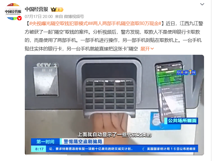 江西九江市で警察が摘発した事件の犯人は、スマホに搭載されたNFC(近距離無線通信)を悪用。スマホがカード情報をシミュレートし、ATMと通信して現金を引き出していた。この犯罪グループは短期間に80万元(約1,650万円)を超える現金を不正に取得し、複数都市で同じ手口を繰り返していたことが判明している。