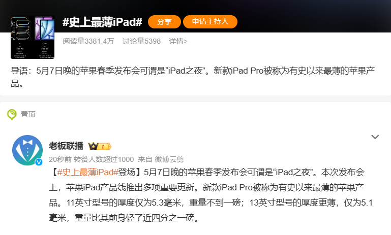 次世代技術をめぐる競争が激化し、中国ブランドの攻勢が続くなか、アップルは5月7日に最新タブレット製品となるiPadProを発表し、15日から発売を開始する。同デバイスは最新のM4チップを搭載し、AIへの対応を想定した高いパーフォマンスが売りで、究極の薄さと軽さを実現したことでも注目を集めている。中国のハイテク製品愛好者たちに選択肢を提供することで巻き返しを図り、ブランド価値の回復に向けた起爆剤としたいところだ。