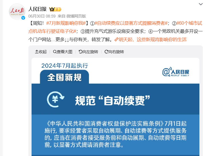 「中華人民共和国消費者権益保護法施行規則」が2024年7月1日に施行になった。この規則は、高齢者や未成年者の消費者権益を保護するために、事業者に新たに課される義務が明示された。具体的にはテクノロジーを利用して商品の購入やサービスの受け入れを消費者に強制的に促すことを禁じるもので、サービスの自動延長や課金の自動継続などの手法が規制される。