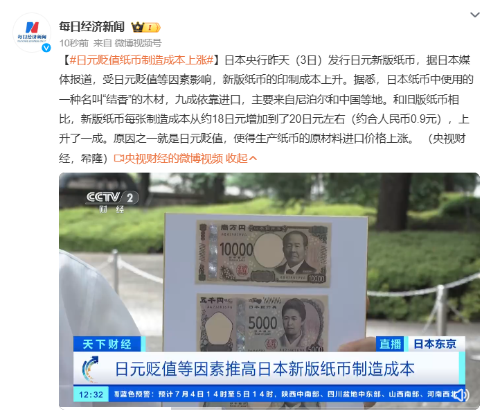 日本銀行は7月3日に新しい日本円紙幣を発行したが、円安の影響で新札の製造コストが上昇しているという。それでも、最新の偽造防止技術が導入された新札発行による経済効果への期待は大きい。中国のネットでも新たに肖像画に選ばれた人物に関心が寄せられている。