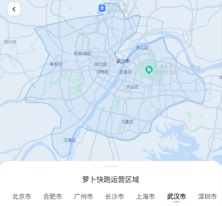 武漢市における萝卜快跑(Luóbo Kuàipǎo)の対応エリア