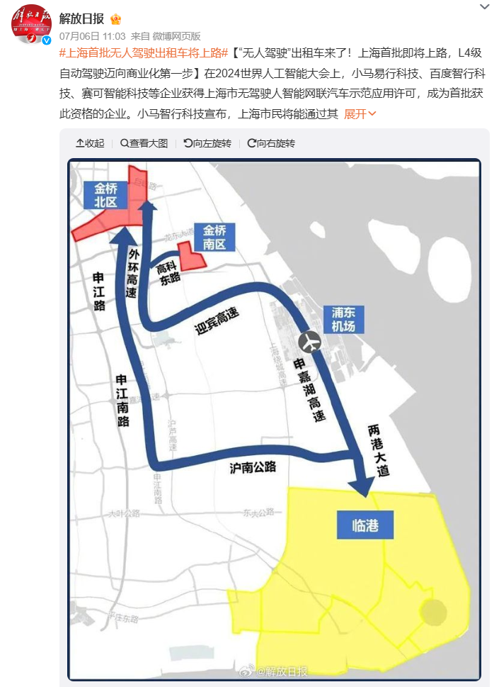 こうした中、上海でもついにレベル4の無人運転タクシーのテスト走行が開始した。7月4日から6日にかけて催された「2024年世界人工智能大会」で賽可智能科技、百度智行科技、上海裹動科技(AutoX安途)、小馬易行の4社が同市における自動運転プラットフォームの運営許可取得を受けてのものだ。4社は来年(2025年)1月4日までの間、浦東エリアの一部道路で全自動運転車両を走行させ、利用者は小馬智行やAutoX安途といった対応するアプリを使って配車予約を行う。