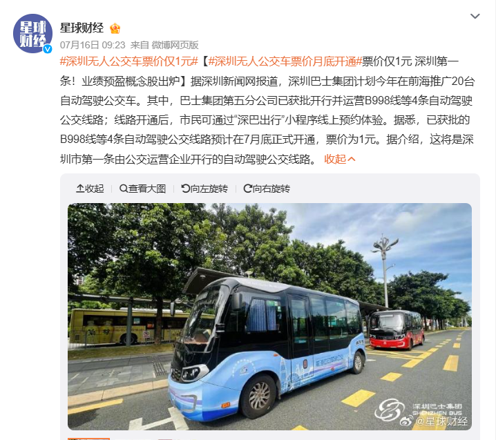深圳のロボバス、1元で運行へ