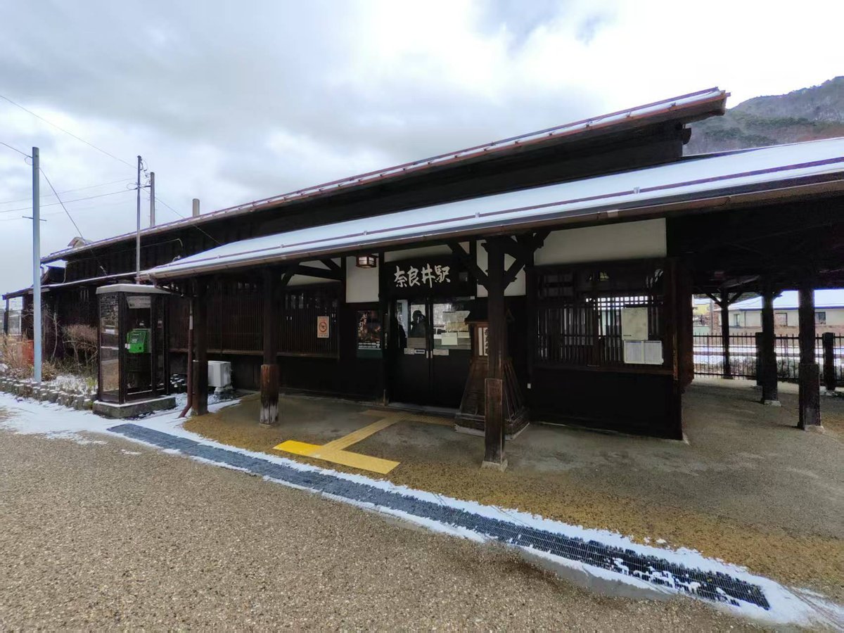 戸口をくぐれば木曽のヒノキの香りがかすかに漂い、外に出れば奈良井宿の一本道が静かに続いている。駅とはもともと、これほどまでに「急かさない」装置だったのだろうか。そんな問いをふと抱かせてくれる空間だ。