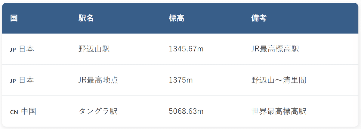 日本と中国の高原鉄道駅を数値で比較すると、その差は歴然としている。
