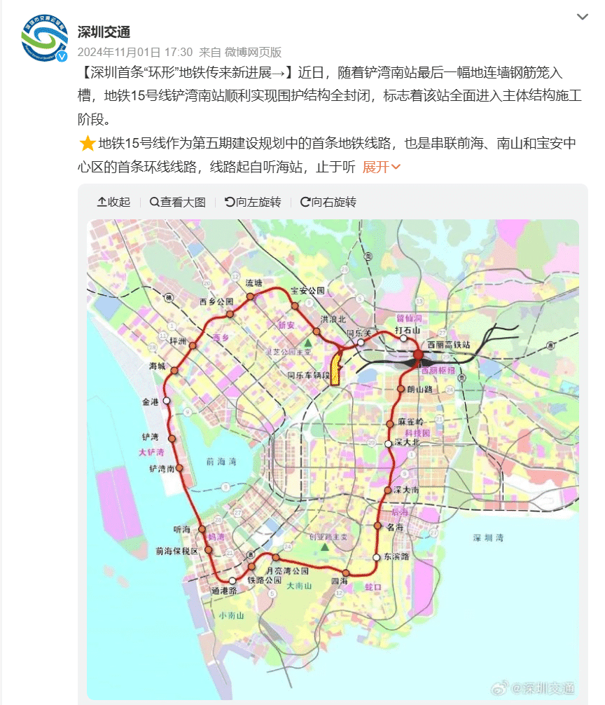 URL: https://jtj.wuhan.gov.cn/jtzx/zwdt/202601/t20260126_2718573.shtml深圳新闻网「深圳首条环形地铁线新进展 15号线同乐车辆段盾构始发」(2026年1月30日)