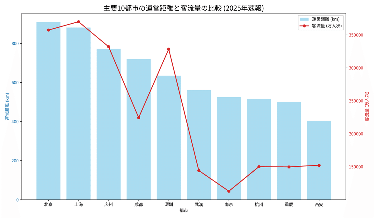 もっとも、中国政府は2018年以降、地下鉄建設の新規許可を事実上絞り込んでおり、新規路線の承認は厳格化されている。一部の例外を除き、既存都市での大規模な新規プロジェクトは減少傾向にあるとされる。財政負担の拡大と、開通後の乗客数が予測を下回る路線が続出したことが背景にある。軌道交通を巡る都市行政の軸は、規模の誇示から品質の吟味、そして「需要と採算の一致」へとシフトしようとしている。